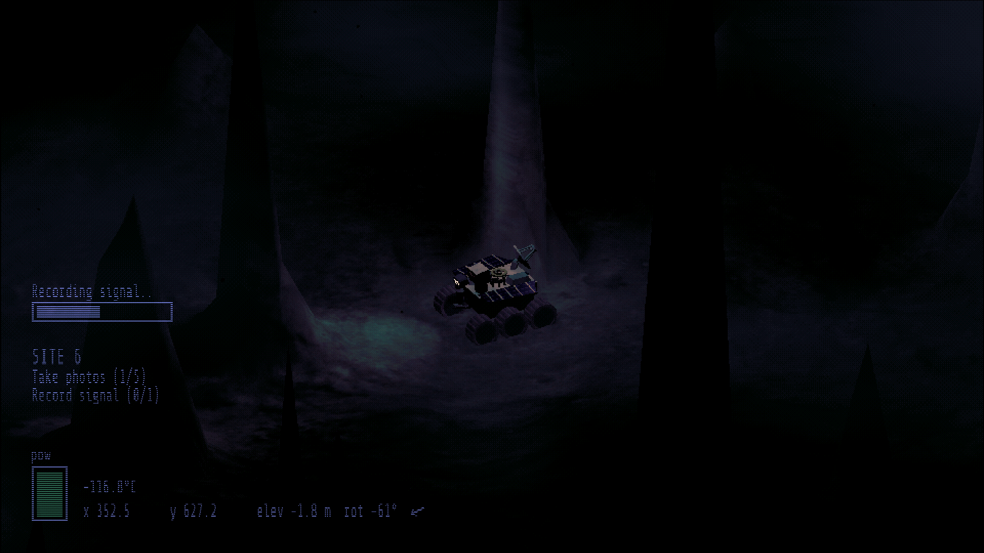 - Take up the role of a hastily constructed rover - drive across rocky terrain to take grainy photos and record crackly signals, and conserve battery power to survive.